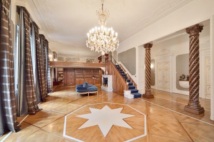 Saloni importanti di alta rappresentanza, marmi intarsiati e parquet antichi. Zona servizio separata da zona padronale. Monolocale al sesto piano.